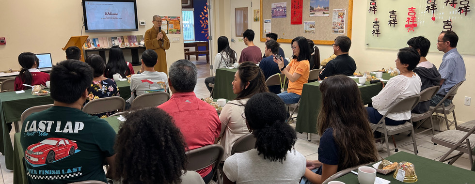 Venerable Ruyuan, the abbot, delivered a welcome speech, praising the youth group for organizing the event and bringing parents and friends into the temple to learn about Fo Guang Shan, BLIA, and the unique aspects of the youth division. He also encouraged the young attendees to cultivate gratitude, responsibility, and inspiration in their daily lives and take charge of their own futures.